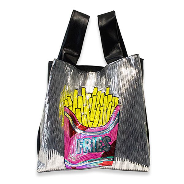 Acquista Moda Morbido Paillettes Divertenti Patatine Fritte Donne Del Fumetto Flap Borse Casual Lady Vacanza Partito Totes Borsa Da Spiaggia Bambino